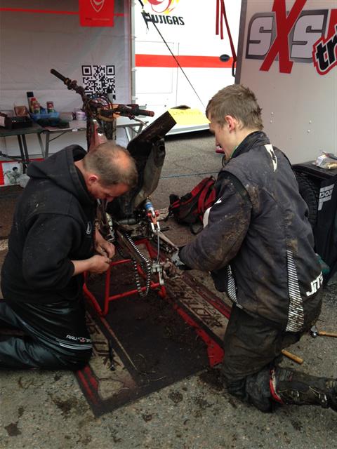 Det er her profferne gør det rigtigt godt, for de har styrken til at komme igennem sektionerne på nul prikker – men selv om man er proff, så kan det også gå galt. Eddie Karlsson var netop kommet i mål, da vi talte med Ole og Dan. Eddie havde med 90 km/t på en grusvej, ramt en sten med baghjulet. Det havde betydet at hele 6 eger var knækket, og hjulet var slået skævt. Men der var ikke andet at gøre end at forsætte imod mål – og med en skæv bagfælg kunne han nu glæde sig over at være kommet over målstregen. Eddie kan fortælle danskerne at han er stået af motorcyklen 2 gange i dag.